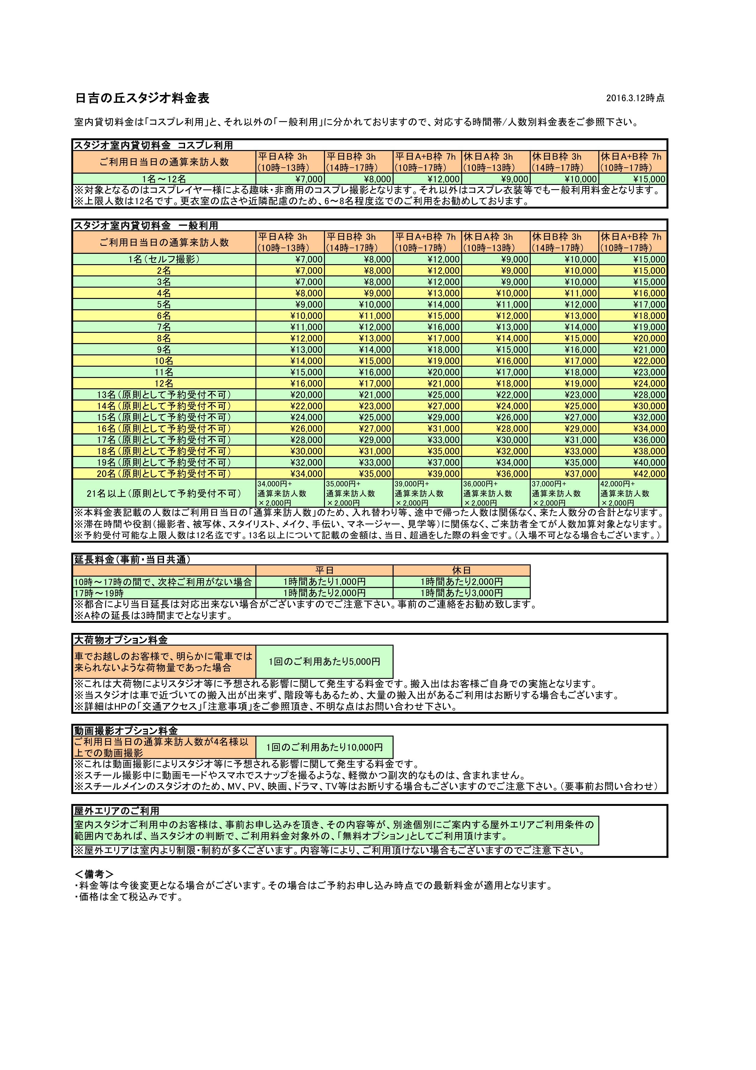 ※当スタジオ主催の平日コスプレシェアの料金はこちらに記載の通りとなります。