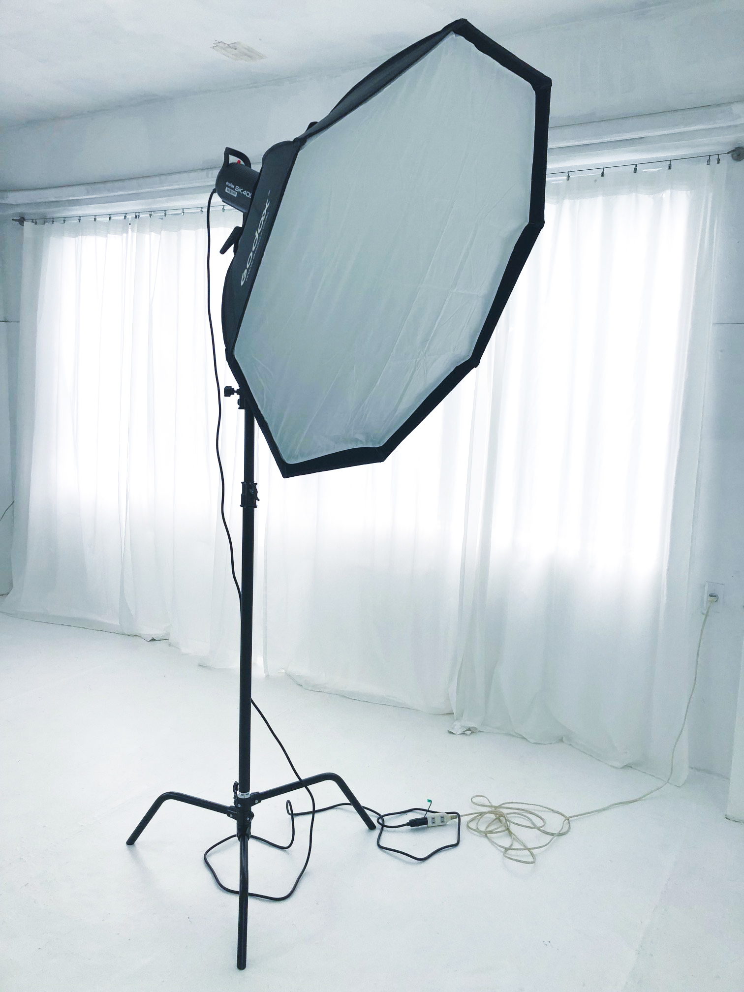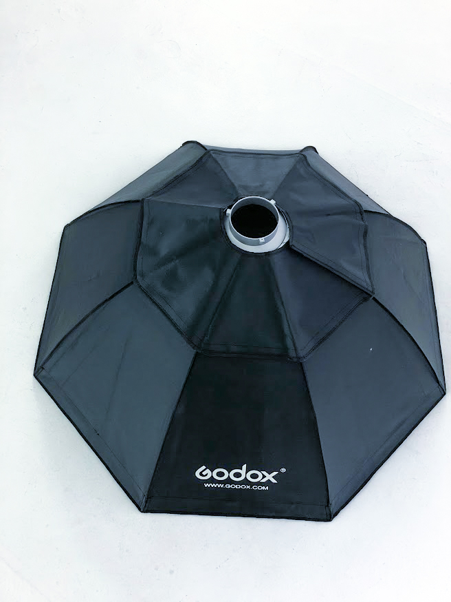 オクタゴン(八角形)形のソフトボックスです。直径(収まる円)は120cm近くと大型のため、小さなソフトボックスを使用するよりも影が目立ちにくい、ソフトな光を生み出すことが出来ます。