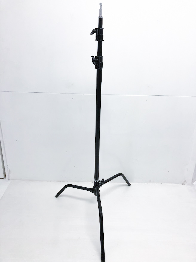 スチール製の大型スタンドです。無料レンタルのスタンドより軸部分が頑丈に出来ており、安定度も高いため、、比較的重量のある機材の装着に向いています。